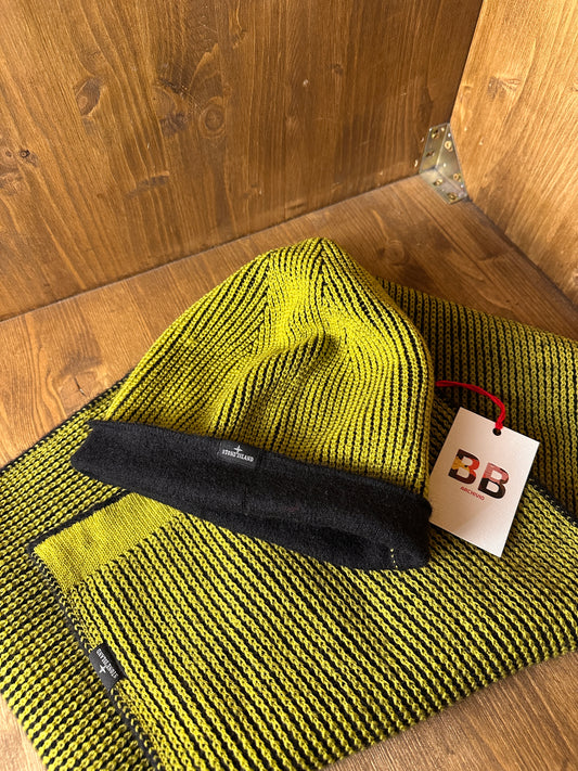AW18 3D KNIT SCARF & BEANIE in Lime Green & Black