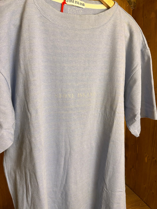SS80s STRIPED TEE FRONT SPELLOUT in Light Blue
