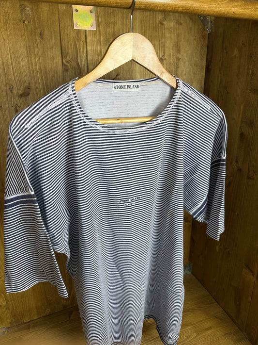 AusverkauftSS80s STRIPED TEE FRONT SPELLOUT in Light Blue