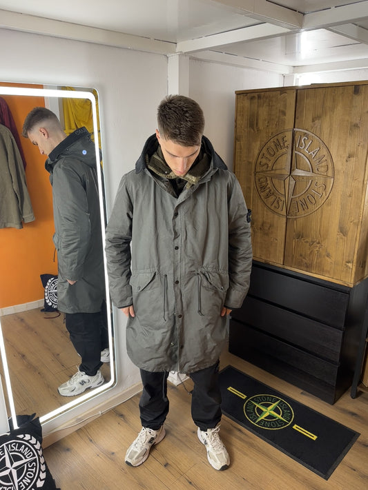 AW06 FISHTAIL SPELLOUT HOOD PARKA in Dust Grey
