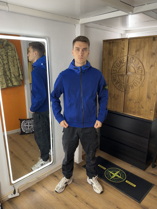SS15 MUSSOLA GOMMATA HOODIE AUS BAUMWOLLE MIT REISSVERSCHLUSS in Enzianblau