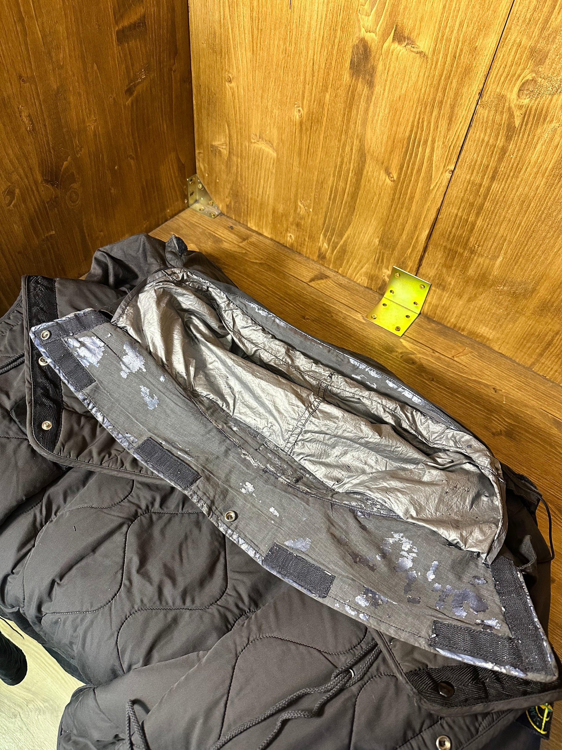 // AW04 LINO RESINATO FISHTAIL GREY PARKA