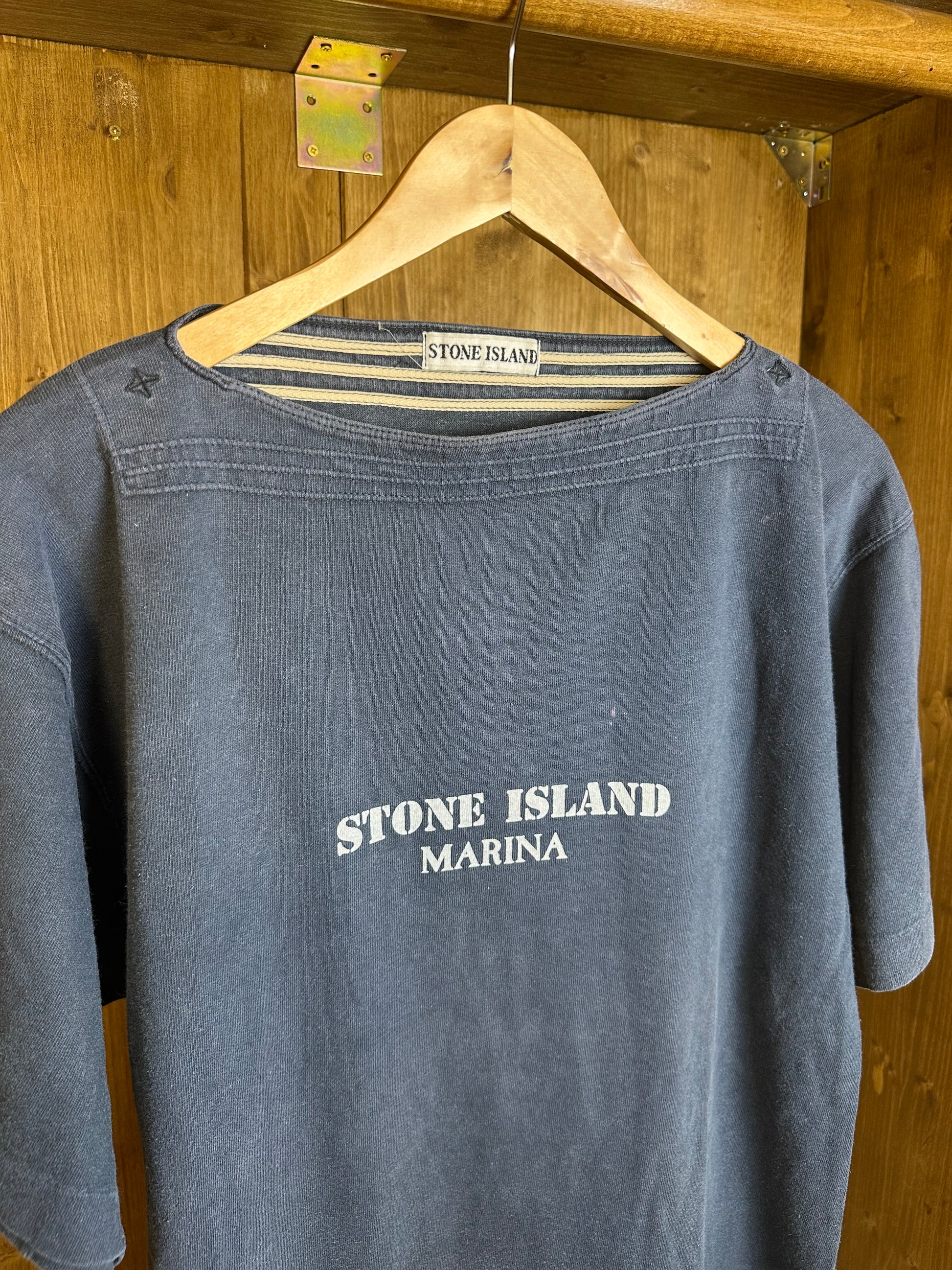 SS80s SPELLOUT BOATNECK MARINA TEE in Dark Blue