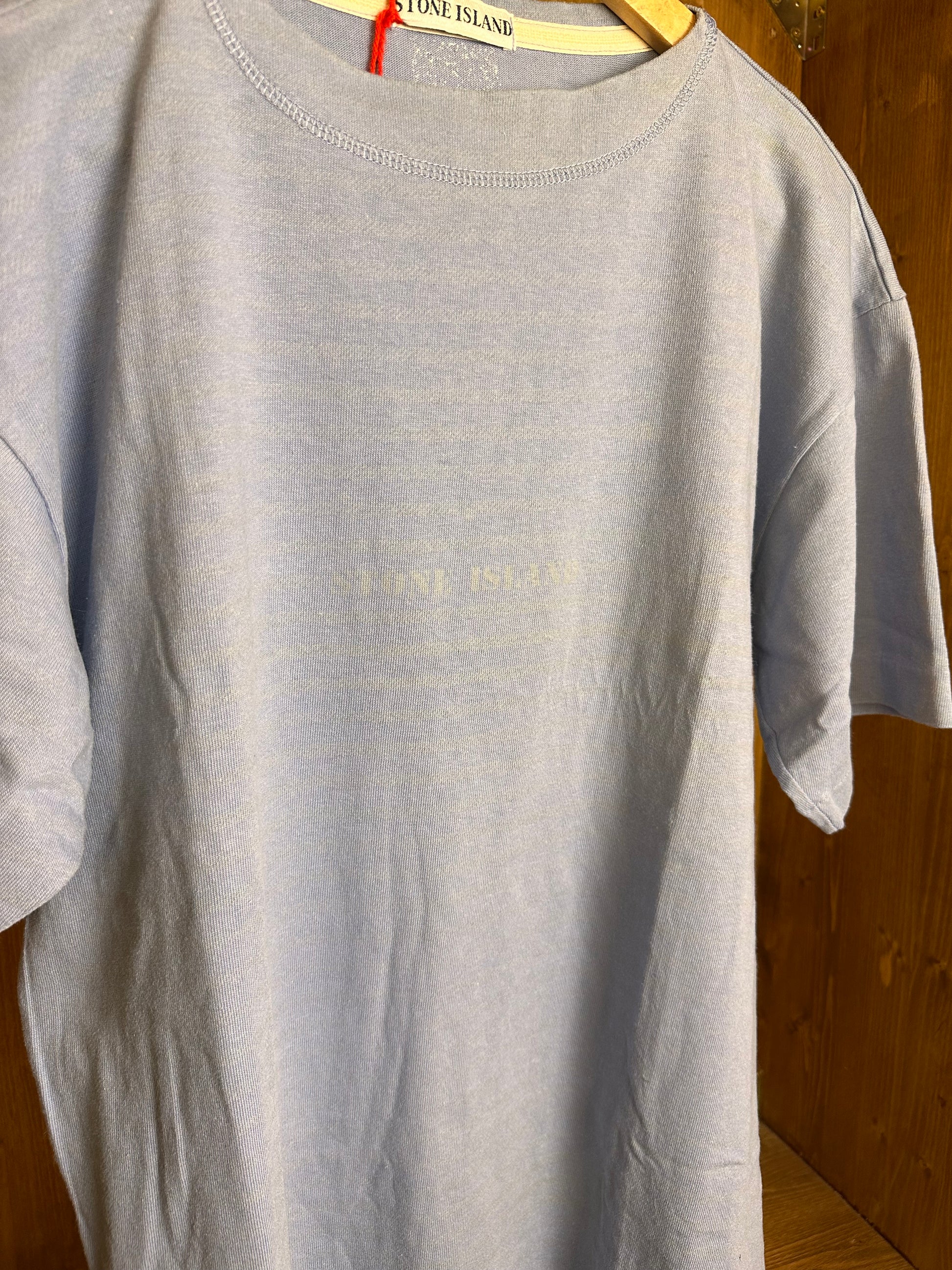 SS80s STRIPED TEE FRONT SPELLOUT in Light Blue