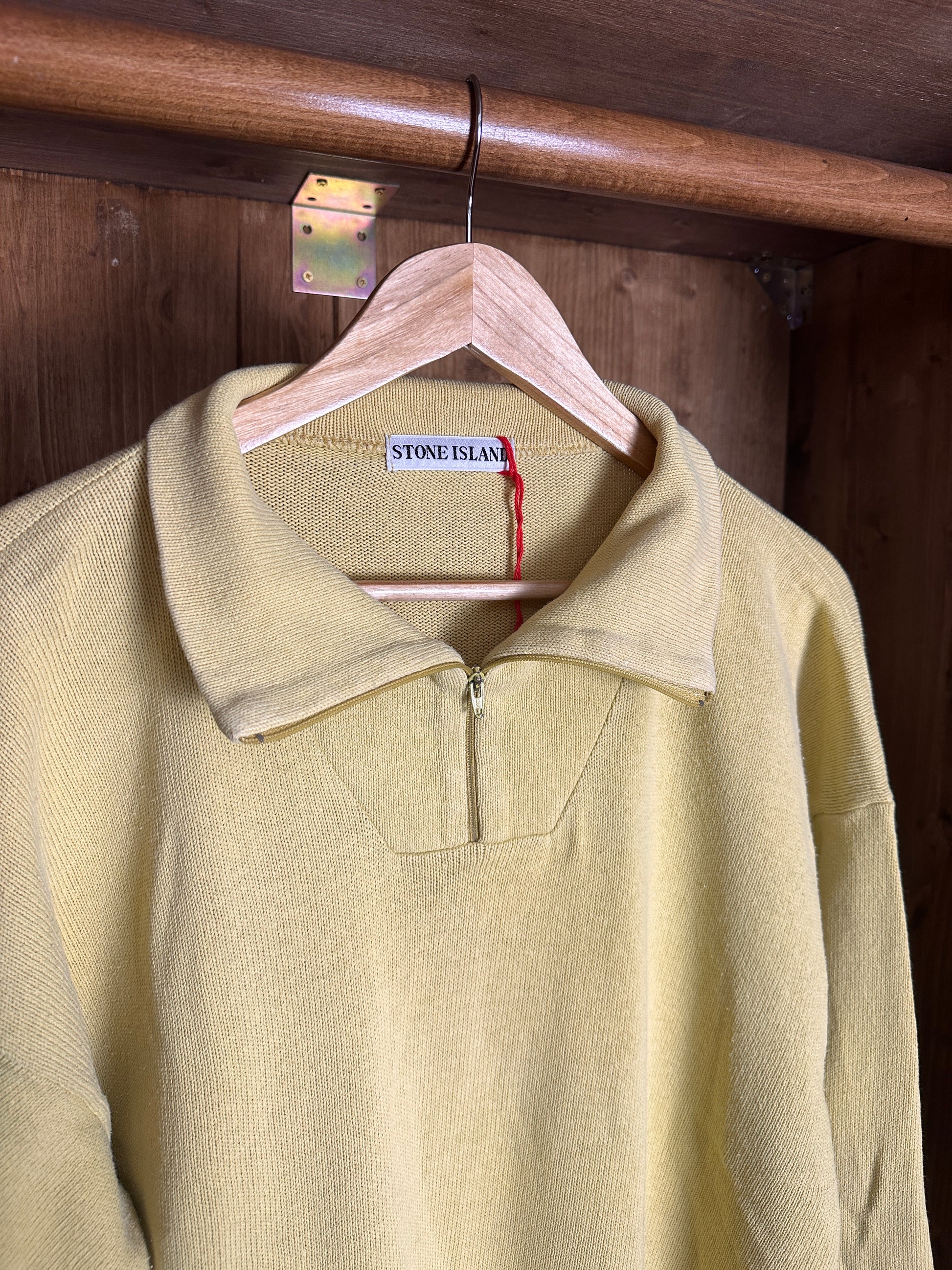SS90s COTTON FLAX 1/4 ZIP JUMPER BACK SPELLOUT in Pastel Yellow